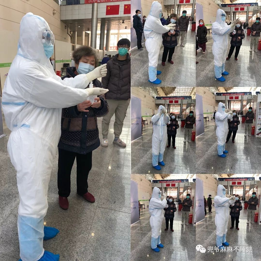 这天晚上,一位热心的大妈主动接过护士手里的广播喇叭,拖了个凳子过来坐定,一连串气势恢弘的武汉话脱口而出。