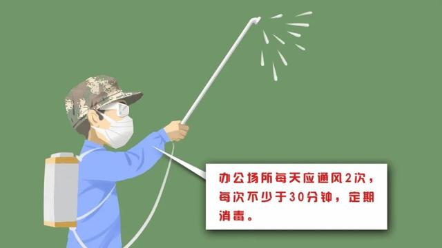2、办公室每天应通风2次,每次不少于30分钟。每日两次对办公室、楼道、电梯间、前厅、淋浴间、卫生间等公共场所使用消毒液消毒两次。