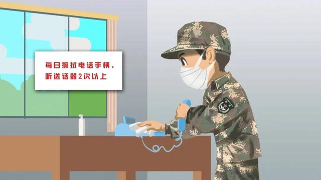 6、各连以上单位应培训两名以上消毒技术人员,掌握室内消杀灭技术。常用办公用品如电话、文件夹、笔、键盘、鼠标等均应每日用酒精擦拭消毒。