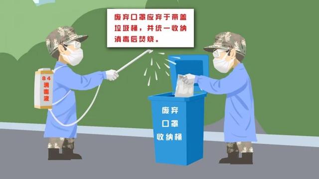 8、单位应设置带盖废弃口罩集中收纳桶。废弃口罩应由卫生防疫人员用封闭垃圾袋收集,一日一清一消毒,消毒后统一在深坑焚烧掩埋。