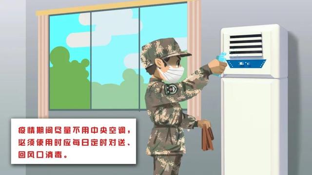 12、防控期间尽量使用单机空调,并对送风口每日消毒。尽量不使用中央空调,确需使用应每日定时对送、回风口消毒,发现中央空调区域有疑似症状人员,必须停用。