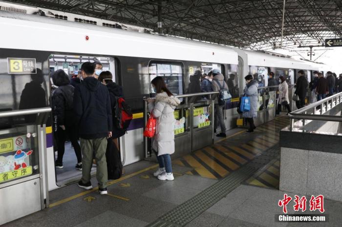 3月2日,随着上海复工企业日渐增多,地铁出行客流增速渐涨,为避免车厢过多拥挤,上海地铁对工作日早高峰期间的17座人流较高的车站采取限流措施。中新社记者 张亨伟 摄