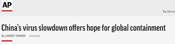 据美国美联社报道,世界公共卫生部门表示,中国新冠肺炎病例数量持续下降为全球疫情得到控制带来了希望,但如果其他国家不采取严厉措施,疫情是否能在短期内得到控制仍有待观察。