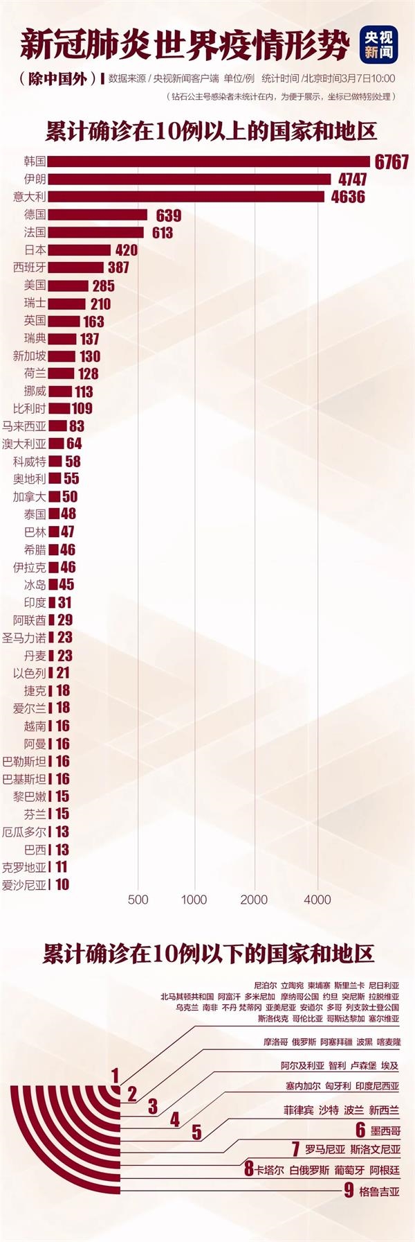 世界卫生组织6日公布的最新数据显示,截至欧洲中部时间6日10时(北京时间6日17时),中国境外新冠肺炎病例较前一日增加2727例,达到17481例;死亡病例较前一日增加69例,达到335例。