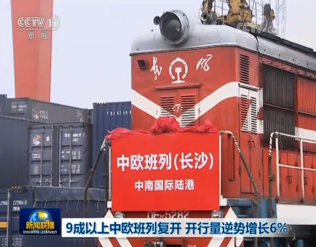 央视网消息(新闻联播):国家发展改革委今天(3月8日)表示,中欧班列复工率已达90%以上,今年以来开行量实现逆势增长,下一步国家将出台相应政策措施,促进中欧班列安全稳定高效运行。