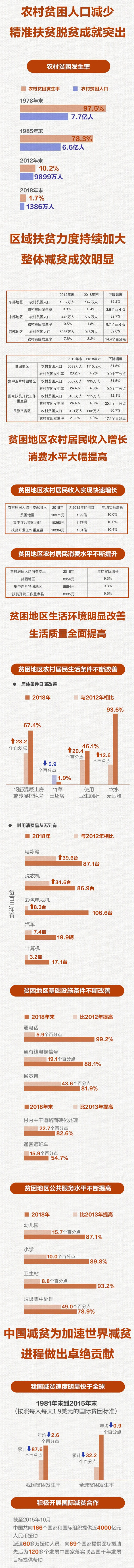 新中国成立70年来,党中央、国务院高度重视减贫扶贫,出台实施了一系列中长期扶贫规划,为全面建成小康社会奠定了坚实基础。(图为新中国成立70周年以来我国脱贫攻坚取得历史性重大成就。)