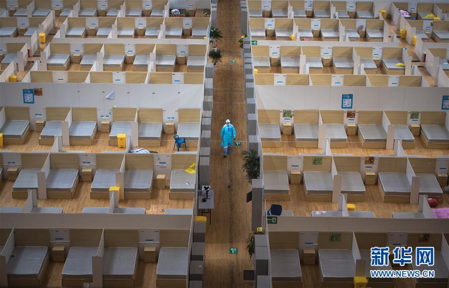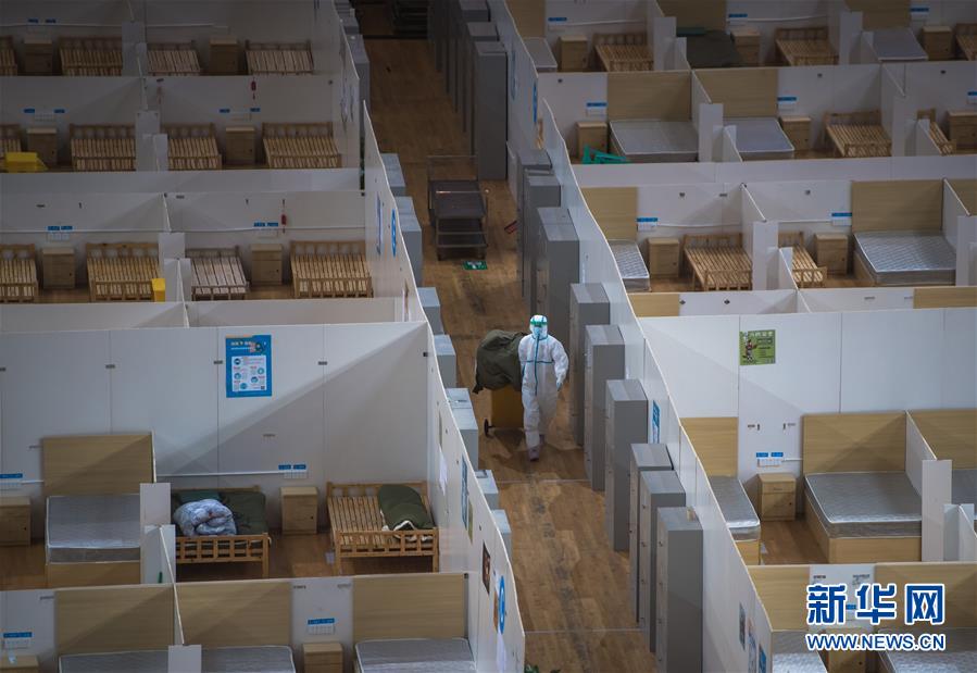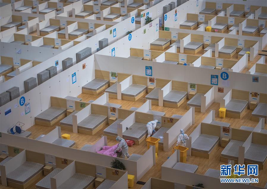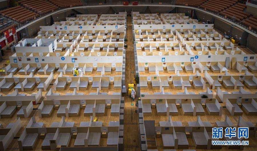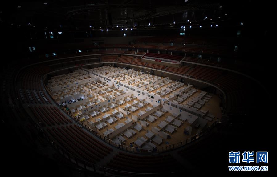 3月8日,休舱的武汉体育中心方舱医院。 当日,武汉体育中心方舱医院送走最后一批痊愈患者,正式休舱。随后,舱内将进行全面消毒工作。 新华社记者 肖艺九 摄
