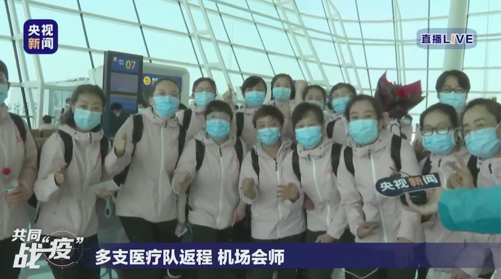 武汉天河机场又迎来返乡的白衣天使