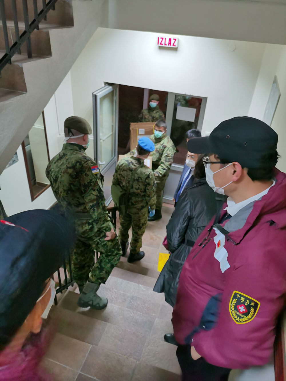 3月21日,援助塞尔维亚抗疫医疗专家组一行6人乘专机飞往塞首都贝尔格莱德,由中国政府捐赠的一批医疗物资同机抵达。