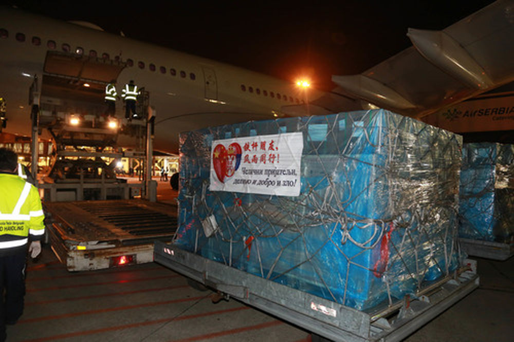 中国援助塞尔维亚抗疫医疗专家组一行6人21日晚乘专机抵达塞首都贝尔格莱德,由中国政府捐赠的一批医疗物资同机抵达。记者:石中玉