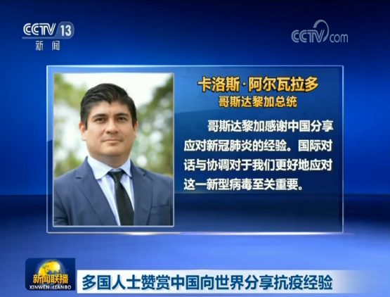 哥斯达黎加总统卡洛斯阿尔瓦拉多20日在社交媒体上发文说,哥斯达黎加感谢中国分享应对新冠肺炎的经验。国际对话与协调对于我们更好地应对这一新型病毒至关重要。