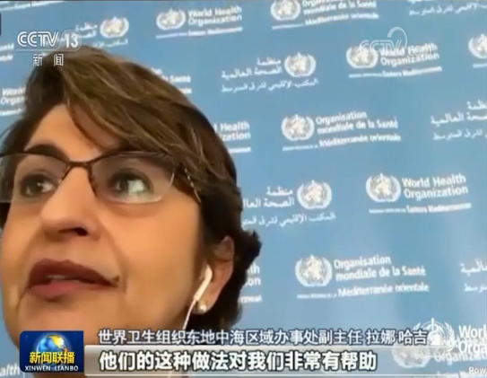 世界卫生组织东地中海区域办事处副主任 拉娜哈吉:我们在伊拉克首都巴格达同中国医疗专家组进行了会面,他们同我们详细分享了他们在中国的病例管理经验,他们的这种做法对我们非常有帮助,中国现在向其他国家派遣医疗专家组分享抗疫经验,对这些国家的疫情防控是非常有帮助的。