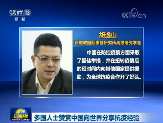 新加坡国际事务研究所高级研究学者胡逸山说,中国在防控疫情方面采取了最佳举措,并在扭转疫情后的短时间内向其他国家提供援助,为全球抗疫合作开了好头。