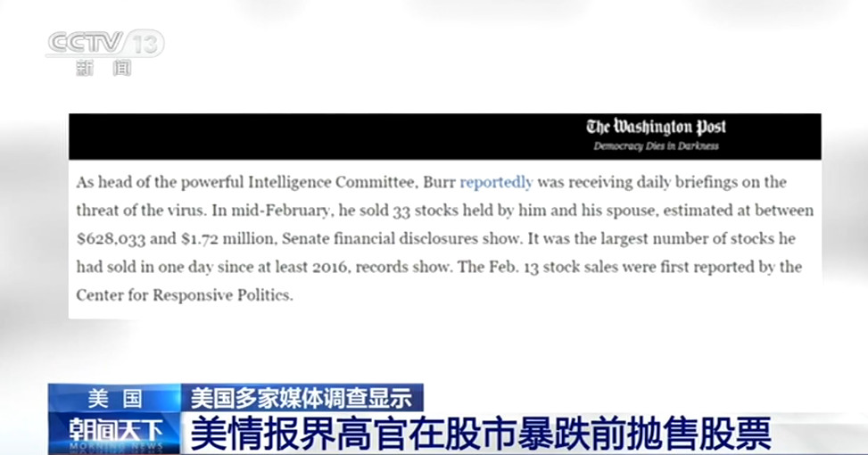 第三个疑问是:为什么2月中旬美国政府对本国新冠肺炎疫情轻描淡写,而参议院情报委员会的多位官员却在那时抛售价值上百万的股票?难道政客们竟然一边利用内幕交易售卖股票,一边对公众隐瞒疫情?难道他们面对疫情,优先考虑的是资本而不是生命?