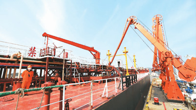 在浙江自贸试验区,“浙海油6”号轮装载的4500吨低硫燃料油日前通过输油管道进入中化兴中石油转运(舟山)公司出口监管仓库。