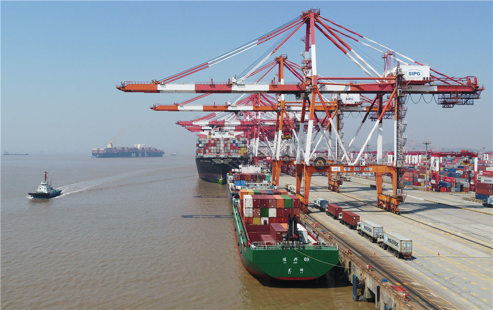 这是3月18日拍摄的上海洋山港集装箱码头(无人机照片)。新华社记者 丁汀 摄
