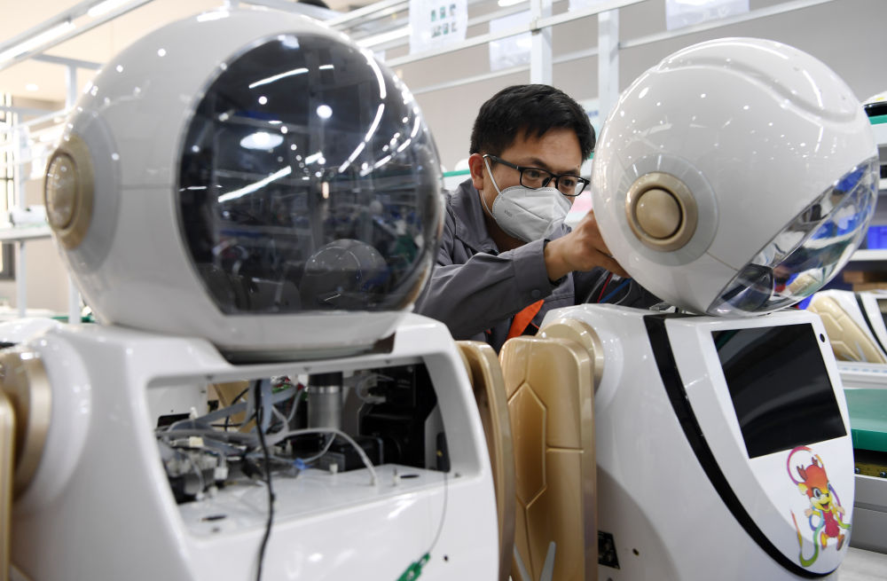 在甘肃张掖市甘州区一家机器人制造企业,工作人员在改装医用机器人(3月23日摄)。新华社记者 范培珅 摄