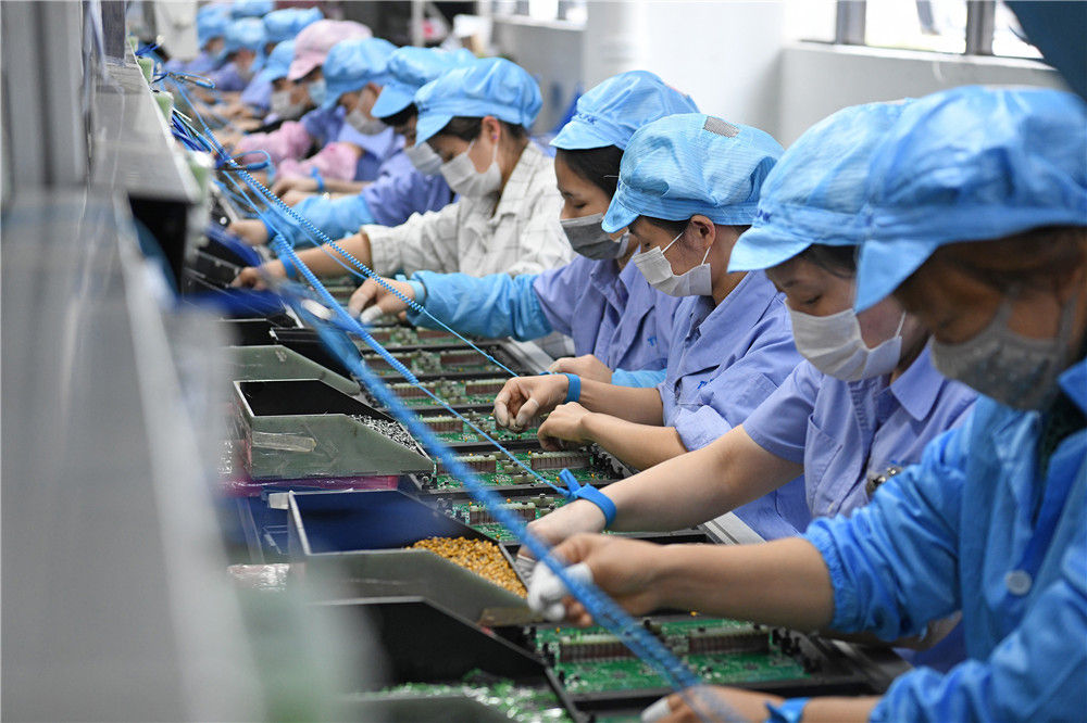 工人在深圳光明区普联技术有限公司出口产品生产车间作业(3月12日摄)。新华社记者 梁旭 摄