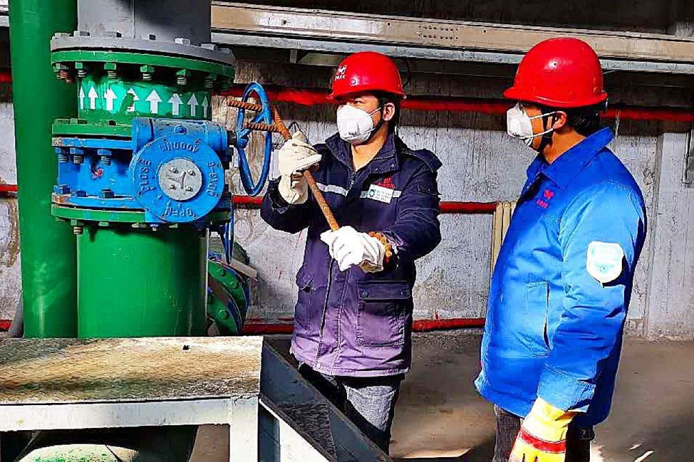 青海宜化化工有限责任公司的工作人员正在进行安全检查(2月9日摄)。(图片由青海宜化化工有限责任公司提供)
