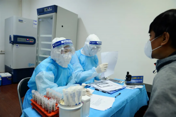 入境人员流调大厅内,对入境人员进行100%流行病学调查