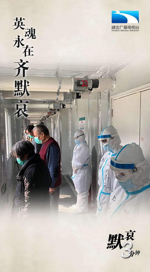 他们坚守在返汉归家的最后一道门,每日13小时的等候,是对归人的体贴,也是对家人的负责,逝者已逝,防疫仍未结束。上午10:00,武汉站出站口境外返汉人员检查登记工作人员在“家门口”静立默哀。