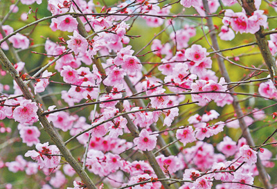 风和日丽,桃花盛开。付维刚的黄桃园热闹起来,有不少前来赏花的游客。付维刚抽了个空,背着儿子爬上黄桃园附近的山,登高望远,让儿子也看看自家的“桃花源”。