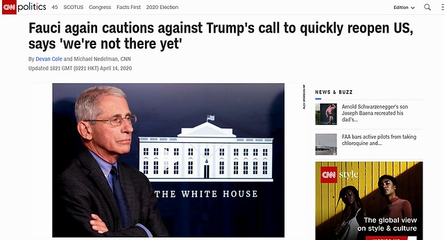 特朗普:5月1日全美各州放宽限制 福奇:太乐观!