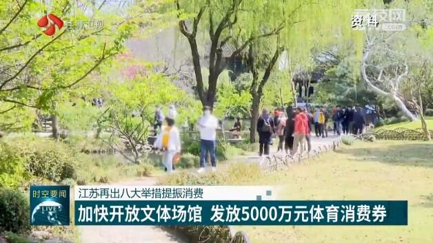 文体消费方面,要求加快推进全省旅游景区和文化体育场馆有序恢复开放。适时举办江苏省文化和旅游消费季活动。面向全省群众发放5000万元体育消费券,提振体育消费市场。