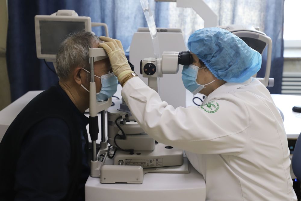 大庆眼科医院,莉莉娅波波娃医生为患者做检查。新华社发 徐凯鑫 摄