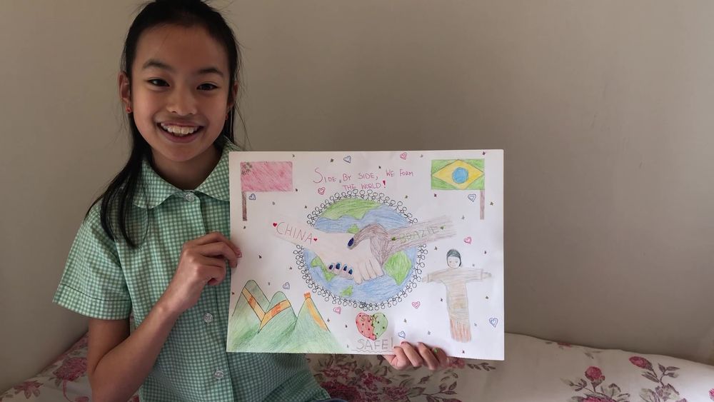 出生在外交官家庭的黄靖杨在巴西生活过三年。从妈妈口中得知拉美疫情后,黄靖杨构思并绘制了一幅中巴牵手图,她希望各国共同努力,让疫情早日结束。
