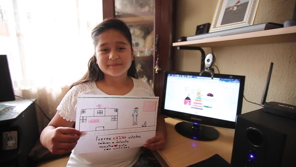 “在我们中国有病毒的时候,拉美小朋友通过画画来给我们加油,现在厄瓜多尔也有病毒,我希望画里的基多女神能够打败病毒!”居住在长沙的4岁小女孩黄奕辰说。