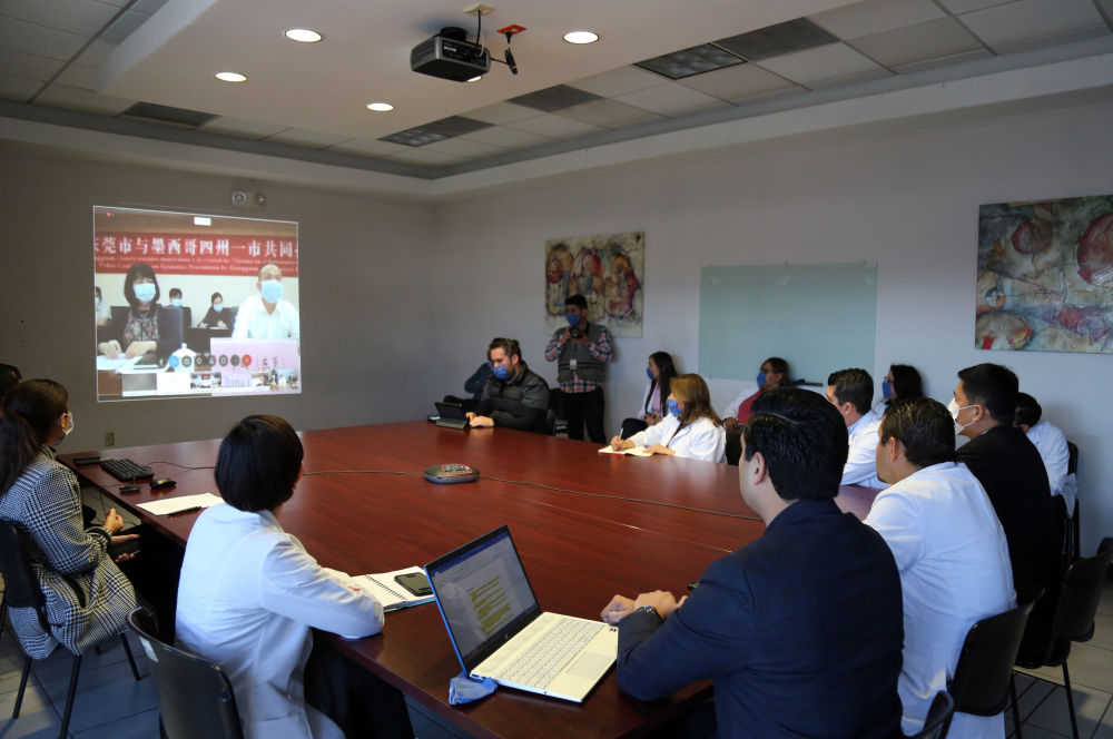 3月27日,中国专家同墨西哥政府官员和卫生专家举行视频工作会议,就疫情防控开展交流。新华社发/中国驻蒂华纳总领馆提供