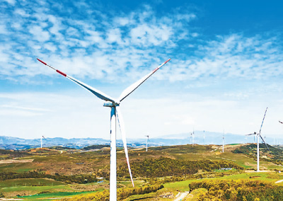 贵州威宁彝族回族苗族自治县雪山镇的风力发电设备。