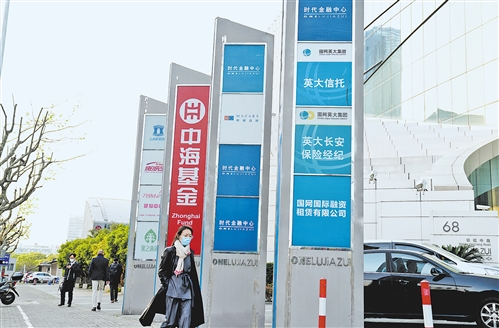 4月9日,行人从上海陆家嘴金融贸易区的建筑物旁走过。上海市一季度新增跨国公司地区总部10家、外资研发中心5家。新华社记者 陈飞 摄