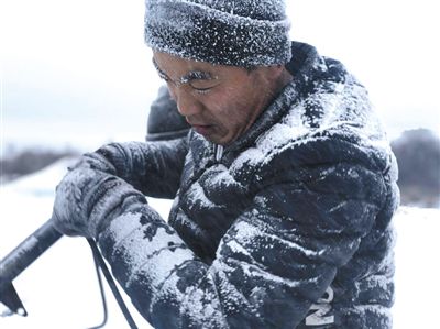 铲开河上的积雪,露出亮如镜的冰面,如果冰层质量较好,他们便开始采冰。他们自己发明了采冰设备,将整块冰切割成重约200斤的冰块,从河里捞出,冻两小时风干水分,装车运走。采冰要十分小心,如果不慎将冰面踩塌,整个人会掉进冰河。采冰季他们每天从早上7点忙到太阳落山,一天能产出2000多块冰。这些冰块将被作成冰雕,用于当地旅游业。