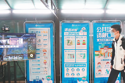 5月6日,在湖北省武昌实验中学,一名高三年级的学生通过疫情防控监测点,经红外测温后进入校园。