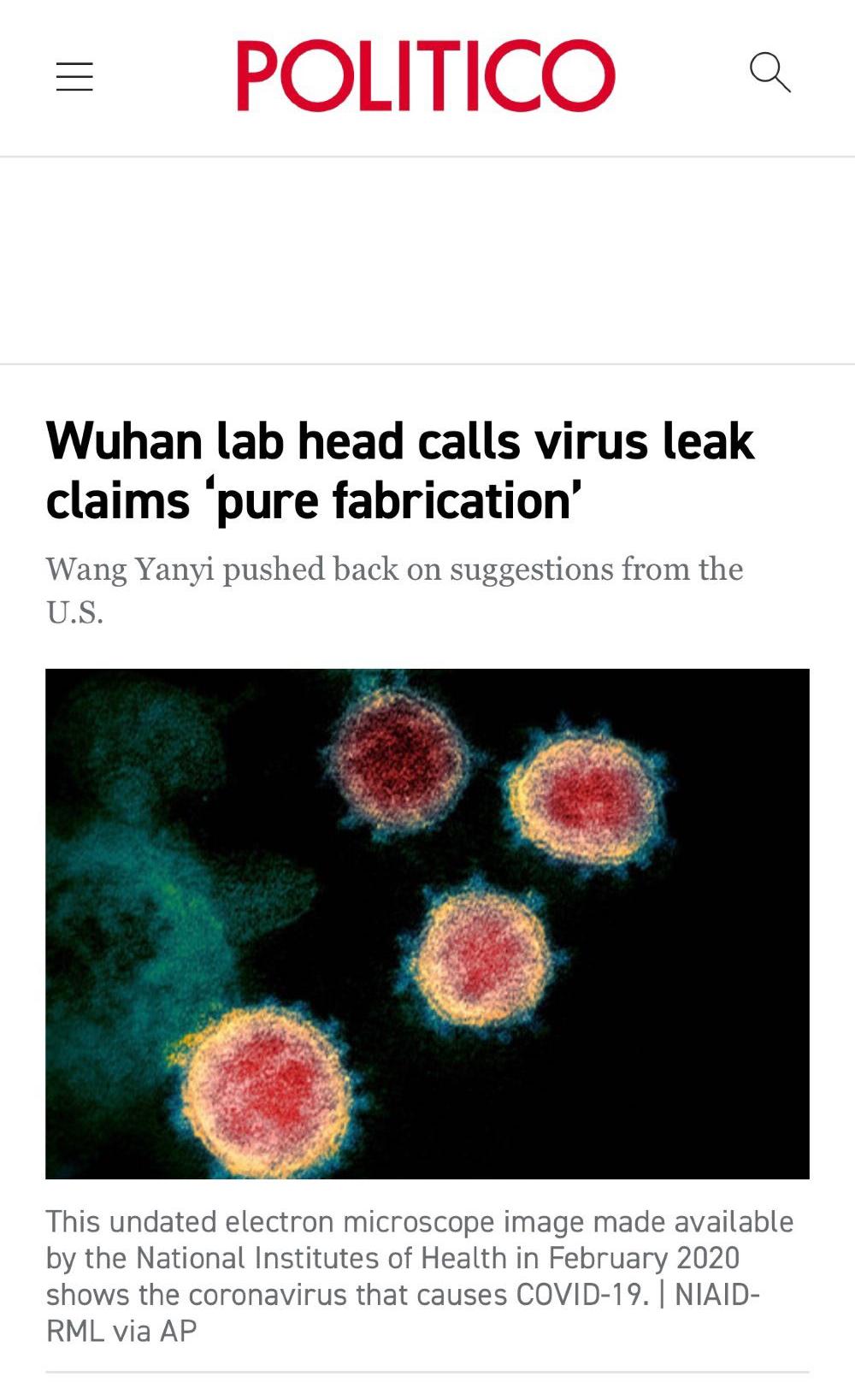 △伊朗媒体援引报道内容:《武汉病毒研究所所长说病毒从武汉泄露的说法完全是无中生有》