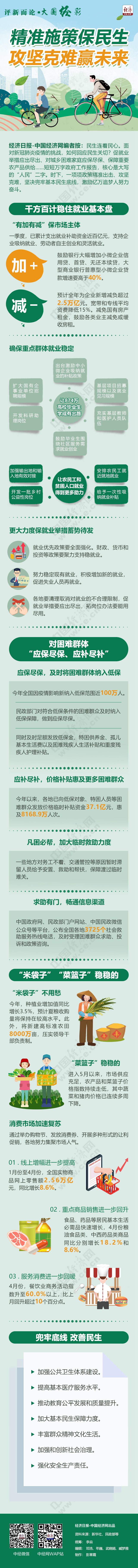 编者按:民生连着民心。面对新冠肺炎疫情的挑战,如何回应民生关切?促就业举措应出尽出、对城乡困难家庭应保尽保、保障重要农产品供给……短短万字政府工作报告,核心是大写的“人民”二字。时下,一项项政策精准出击、攻坚克难,坚决兜牢基本民生底线,激励亿万追梦人努力奋斗。