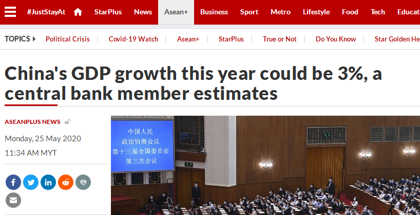 马来西亚《The Star News》对中国两会中经济相关的政策进行了报道,特别关注今年中国没有设置经济增速具体目标。文章援引牛津经济研究院亚洲经济负责人路易斯库伊斯的评论:“今年中国没有设置经济增长目标并不意味着中国领导人不再关心经济增长。”