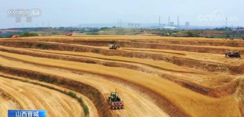 在山西晋城,这两天60万余亩小麦夏收自南向北全面开镰。在阳城县农民杨有会家的麦田里,两台大型收割机不到1个小时就将3.7亩小麦收割归仓。
