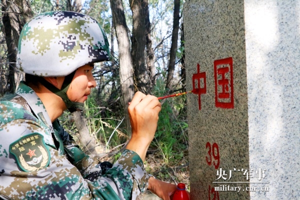处置完特情,官兵们也到达了39号界碑。界碑旁,官兵拿出红漆,一笔一笔,开始庄严地为39号界碑描红。