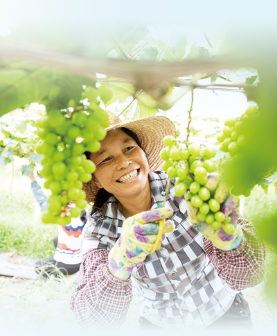 广西壮族自治区梧州市长洲区倒水镇富万村农民在扶贫产业项目葡萄种植基地管理即将成熟的葡萄。何华文摄(人民视觉)