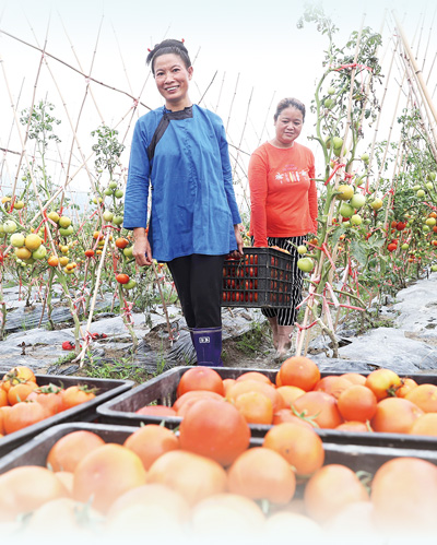 贵州省榕江县车江大坝蔬菜基地,村民采收西红柿。杨成利摄(人民视觉)