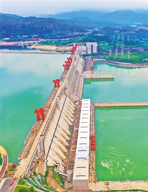 6月10日,湖北省宜昌市三峡库区水位降至最低水位144米,三峡大坝库区腾出库容220亿立方米,为抵御长江上游流域可能发生的洪水提供安全保障。黄善军摄(中经视觉)