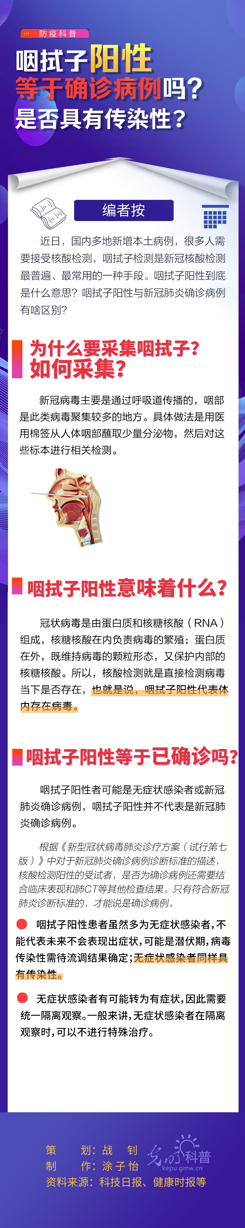 【防疫科普】咽拭子阳性等于确诊病例吗?是否具有传染性?
