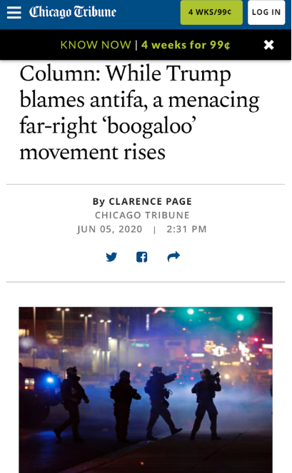 △《芝加哥论坛》称,特朗普在右翼分子日渐猖獗时,反而把焦点放在了左翼组织上