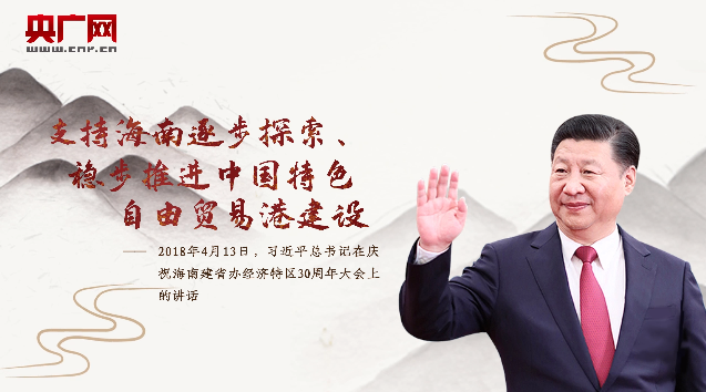 习近平:党中央决定支持海南全岛建设自由贸易试验区,支持海南逐步探索、稳步推进中国特色自由贸易港建设,分步骤、分阶段建立自由贸易港政策和制度体系。