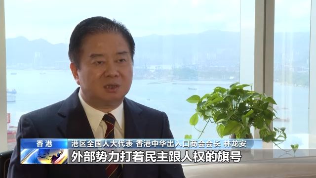 港区全国人大代表、香港中华出入口商会会长 林龙安:香港回归23年来,外部势力打着民主跟人权的旗号,其实是在分裂着(我们)国家的主权。所以我们期待着国安法的早日落地,我们非常支持,也非常感恩国家在关键的时刻的出手,能让香港回归安宁。