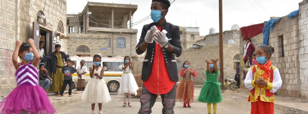 在也门萨那,志愿者劳夫塞勒姆指导儿童正确洗手。图片来自联合国官网