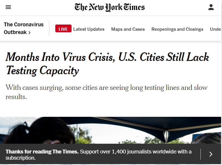 △《纽约时报》称,疫情暴发已有数月,美国城市仍缺乏检测能力。
